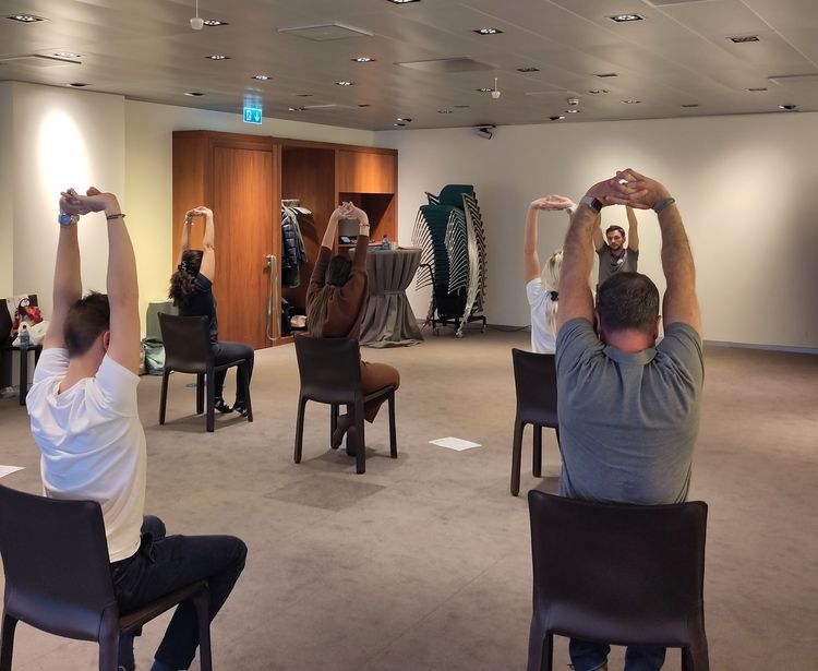 - Workshops en petits groupes sur l’ergonomie, l’éveil musculaire, les étirements et les micro- pauses,